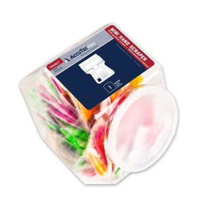- All 100 mini scrapers are individually wrapped and stored in a display jar for grab-and-go supplies or retail