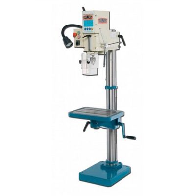Features and Benefits:�1.5 hp motorrequires110 volts of powerand will run in any fabrication or machine shop.�Maximum capacity of up to1” mild steel.�Transmission offersmultiple speeds (125, 420, 535, and 1740 rpm)for drilling and tapping an array of different materials.�Sturdy4" diameter columnreduces flexing to ensure accurate results.�You can easilyadjust the gear head up or downon the column.�Comes standard with aheavy cast iron baseandadjustable table.�Includes aprotective guard around the spindlefor your safety.�Bright halogen work lightbends to provide visibility where you need it.�Baileigh covers this drill press with a1-year warrantypluslifetime technical support by phone.�Need this gear-driven drill press soon? No problem, we keep the DP-1000G in stock forquick shipping.Equipped to run at4 different speeds, the gear-driven metal drill press isas versatile as it is tough. For an economical price, you can add this drill�built to Baileigh�s exacting quality standards�to your shop.