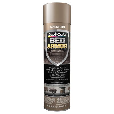 Dupli-Color(R) Bed Armor(TM) Camouflage Do-It-Yourself Truck Bed Liner is a water-based, rubberized polyurethane coating. It is ideal for protecting truck beds, and all other metal, aluminum, fiberglass, and wood surfaces. This special formulation wont chip, fade, or flake and has a textured, black satin finish that provides the ultimate in truck bed protection.