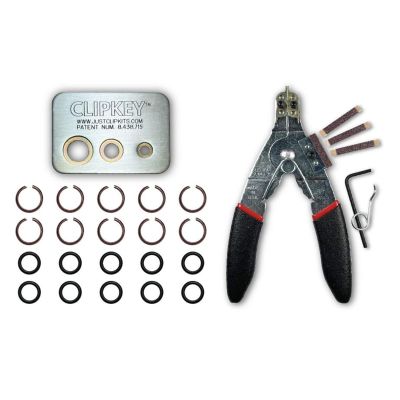 JUST CLIPS TOOL KIT WITH SNAP RING PLIERS, A CLIPKEY AND 10 SETS OF 3/8" FRICTION RINGS & O-RINGS