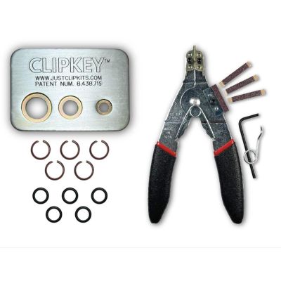 JUST CLIPS TOOL KIT WITH SNAP RING PLIERS, A CLIPKEY AND 5 SETS OF 1/2" FRICTION RINGS & O-RINGS