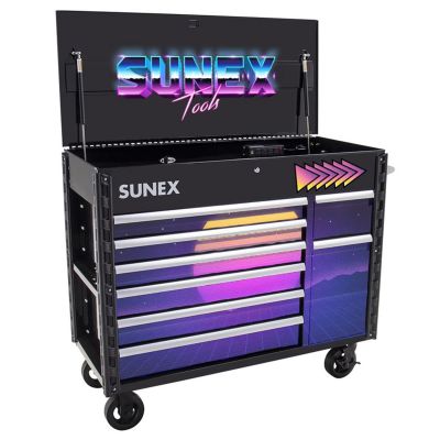 SUNEX 50 Inch 7 Drawer Power Cart with Dedicated Power Tool Storage and Power - 80s Retro